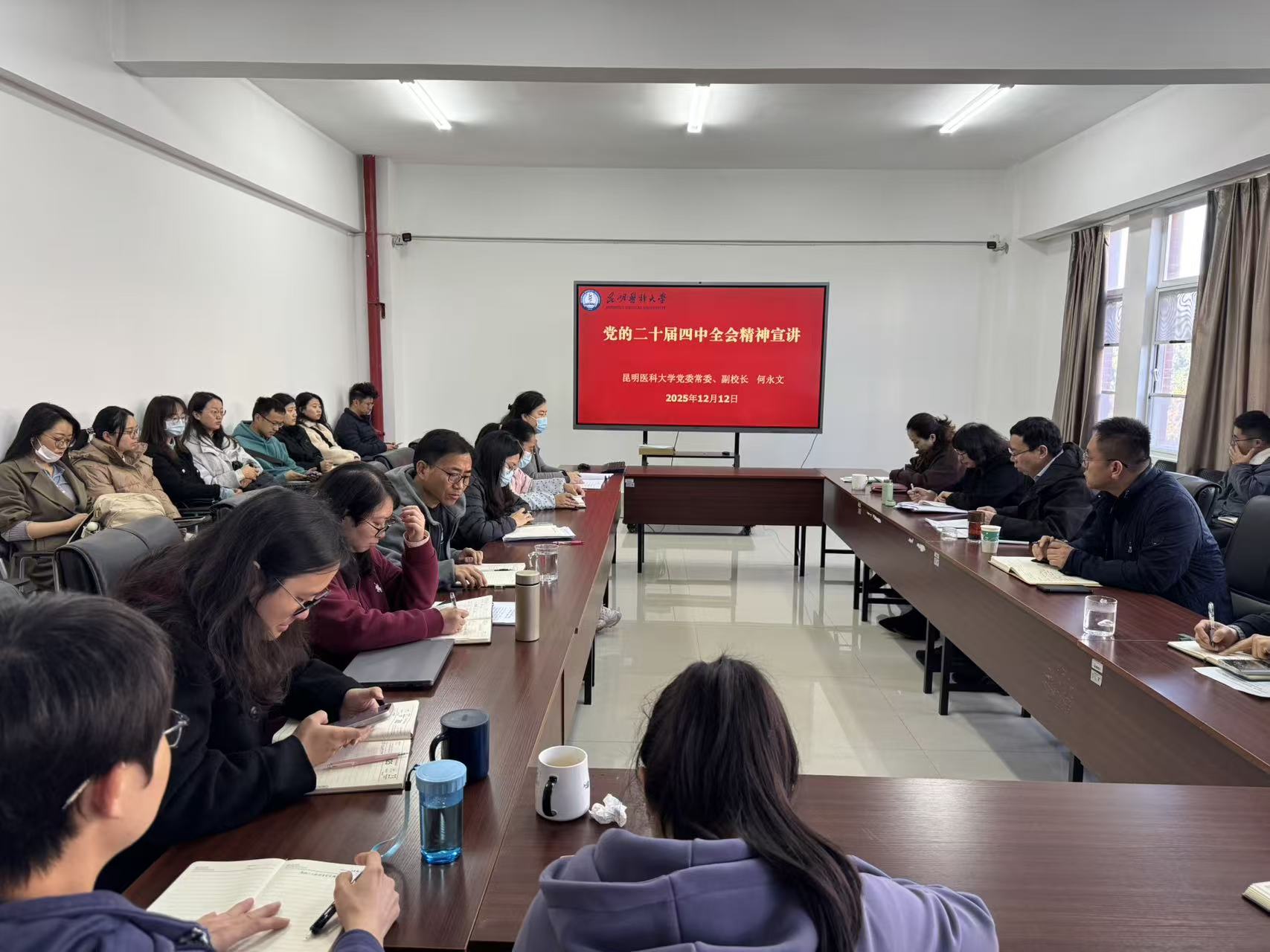 何永文从“深刻领悟全会召开的重大历史意义”、“准确把握‘十五五’时期在基本实现社会主义现代化进程中的重要地位”、“深刻领会‘十五五’时期经济社会发展的指导思想和主要目标”、“全面理解‘十五五’时期战略任务和重大举措”和“坚持和加强党的全面领导,凝聚起推进中国式现代化的磅礴力量”五个方面,结合云南省卫生健康和教育事业发展实际,回顾了国家、云南省和学校“十四五”时期取得的成绩,分析了当前面临的形势,对全会精神进行了全面系统、深入浅出地宣讲和解读,对在教育强国建设征程中如何做好学校学科建设和学位与研究生教育工作提出了意见和建议。