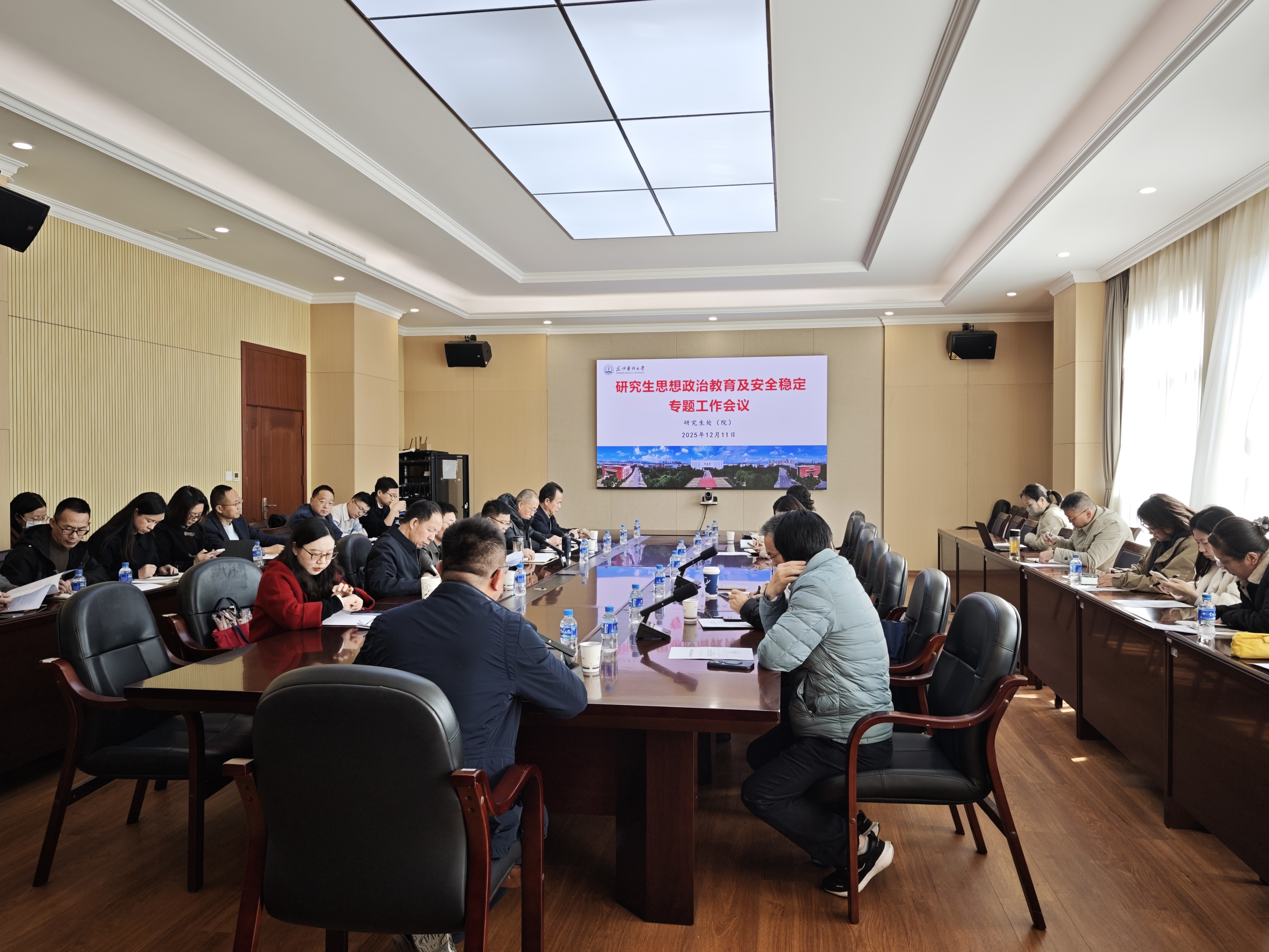 为进一步压实研究生思想政治教育及安全稳定工作责任,全面了解相关工作开展情况,系统谋划研究生思想政治教育及安全稳定举措和重点任务,12月11日,学校在呈贡校区学术交流中心308会议室召开了研究生思想政治教育及安全稳定专题工作会议,33个研究生二级培养单位分管领导和研究生处(院)负责人参加会议。