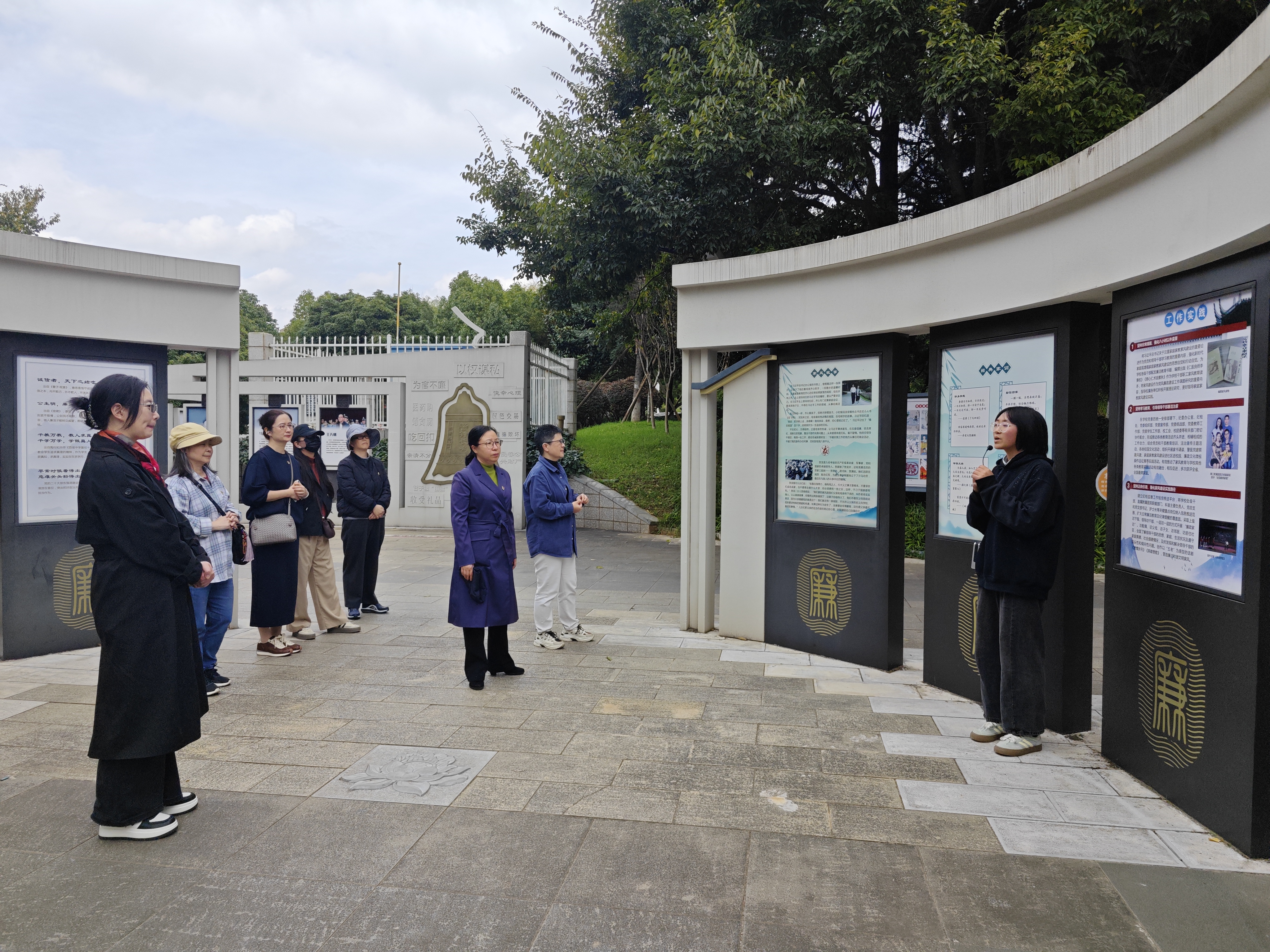 然后利用学校廉洁文化广场开展“开学廉洁第一课”。在讲解员的带领下,党员教师分别参观了启廉区、知廉区、践廉区、尚廉区和警廉区五大展示区域,通过实地参观、案例警示、文化浸润等方式,引导党员教师以“立德树人”为根本任务,将廉洁文化融入日常教学科研管理,筑牢思想防线。
