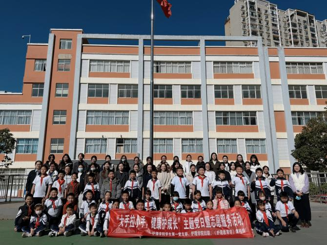 2025年12月12日,护理学院学生第一党支部联合学院妇联、云南省教育厅老年综合照护实验室、《护理教育学》课程组,组织师生党员和入党积极分子走进伟德国际1949官网附属小学,开展“大手拉小手,健康护成长”志愿服务暨主题党日活动。本次活动共有包括附属小学师生在内的400余人积极参与。