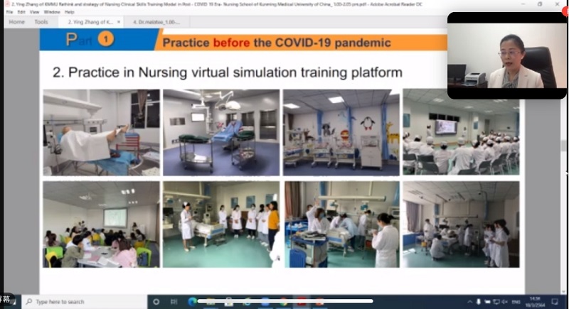此次研讨会中,护理学院张颖院长作为伟德国际1949官网代表,做了“后疫情时代护理临床技能培训模式的反思与策略”的主旨发言,护理学院2名教师及36名在读研究生参会学习。张颖院长指出,2020年初新型冠状肺炎病毒肆虐时期,学生未能在3月份如期返校。危机造成的阻碍促使教师迅速转变理念,学习新技术,最大程度保障学生居家学习。以我院为例,5月份学生返校前,教师充分利用”互联网+教育”模式,结合自建59门网络课程、引入外校优质慕课、结合直播多种形式,积极开展线上理论教学及临床技能教学,建设具有护理学科特色和优势的网络课程,化危为机。在当前全球疫情仍处于不确定的情况下,各国护理学专业人士应当互鉴交流,开发出交互体验更优的虚拟仿真系统,以及更灵活的护理临床技能培训模式,以适应不同的情况。