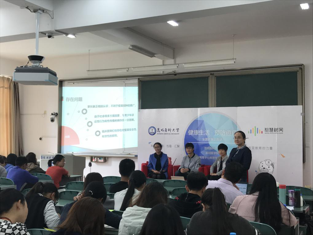 2017年10月21日上午,东西部联盟共享课程《健康生活 预防癌症》第二次主题为“是真的吗?——你身边的癌症伪科学或谣言”的见面课在我校呈贡校区开课,向现场100余名学生以及我校另外两个班级和全国万名通过网络参与直播课程的学子授课。