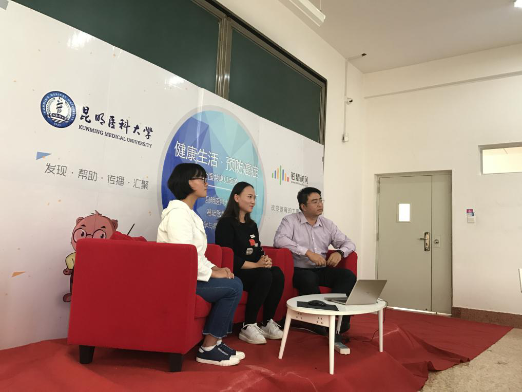 本次见面课在我校的邹英鹰副教授和徐若冰副教授的组织下,联合三位肿瘤专科骨干医生,共同为全国学生奉献了一场理论结合实际,与我们生活休戚相关,别开生面的直播见面课程。而在镜头的另一边,云南大学和黑龙江幼儿师范高等专科学校的学生参与到了课程的直播互动中,提出了很多有意义的问题,现场的三位主治医师也耐心的一一做出了解答。