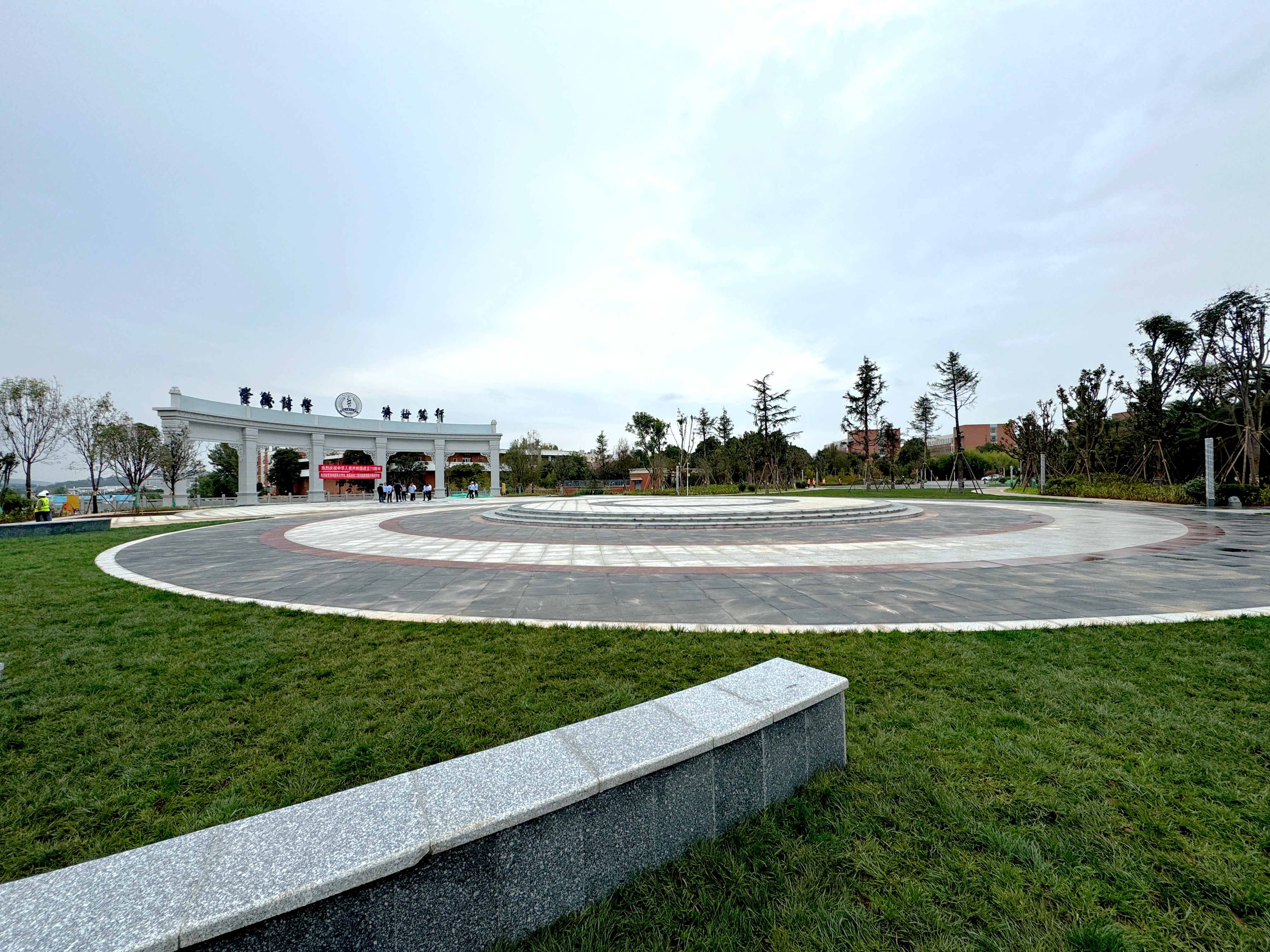 伟德国际1949官网呈贡校区东西苑连接工程位于呈贡雨花片区伟德国际1949官网东、西两苑之间,本次完成建设内容为校园景观平台部分。景观平台以“圆满”为主题,巧妙融合了校徽、校史以及医学文化元素,不仅象征着完整与圆满,更展现了学校包容、博大、团结的精神风貌。景观平台主要包括学校中心广场、劝学广场、精神堡垒牌坊、羽翎幕墙、文化长廊、圣医广场、羽翎广场配套景观等7个各具特色的景观节点,整体设计以圆形校徽的形态为基底,以线串点的方式将各个广场串联,将“崇德博学 济世笃行”校训及精神融入到各类景观设计当中。