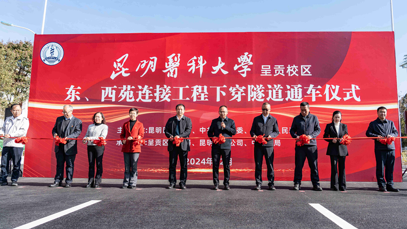 夏雪山在仪式上致辞,他指出,学校呈贡校区东、西苑连接工程是学校近年来改革建设发展进程中的一件大事,是解决师生校内通行安全问题的民心工程,也是学校和呈贡区校地合作、协同发展的最新成果。项目的全部建成,实现了学校与市政道路的完全分离,极大提升了学校的整体形象,进一步构建了安全和谐的校园环境,为学校高水平开放型医科大学建设提供了坚实的基础保障。接下来,学校将进一步加强建设,优化景观,将下穿隧道打造成医学科普示范道路。