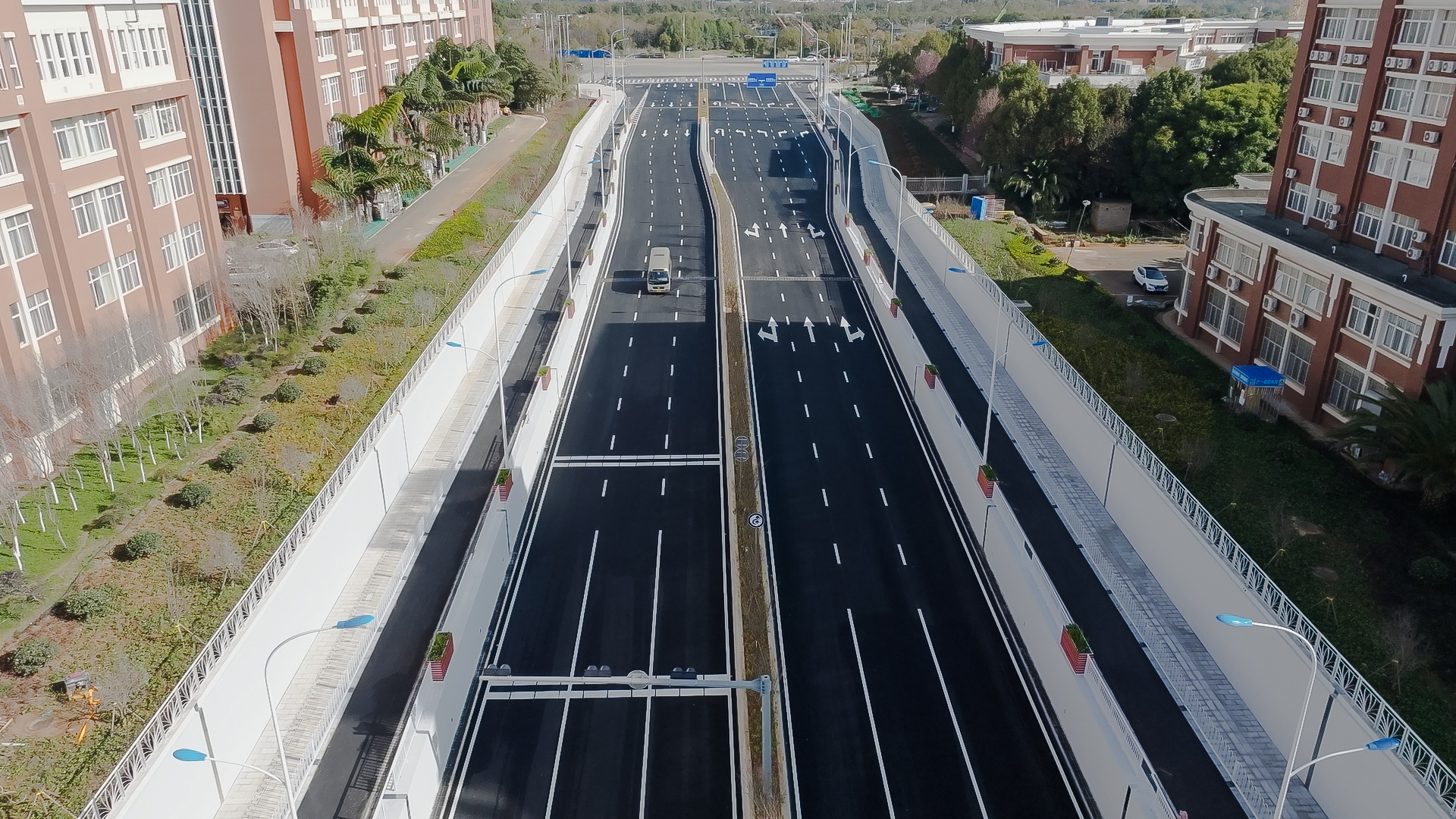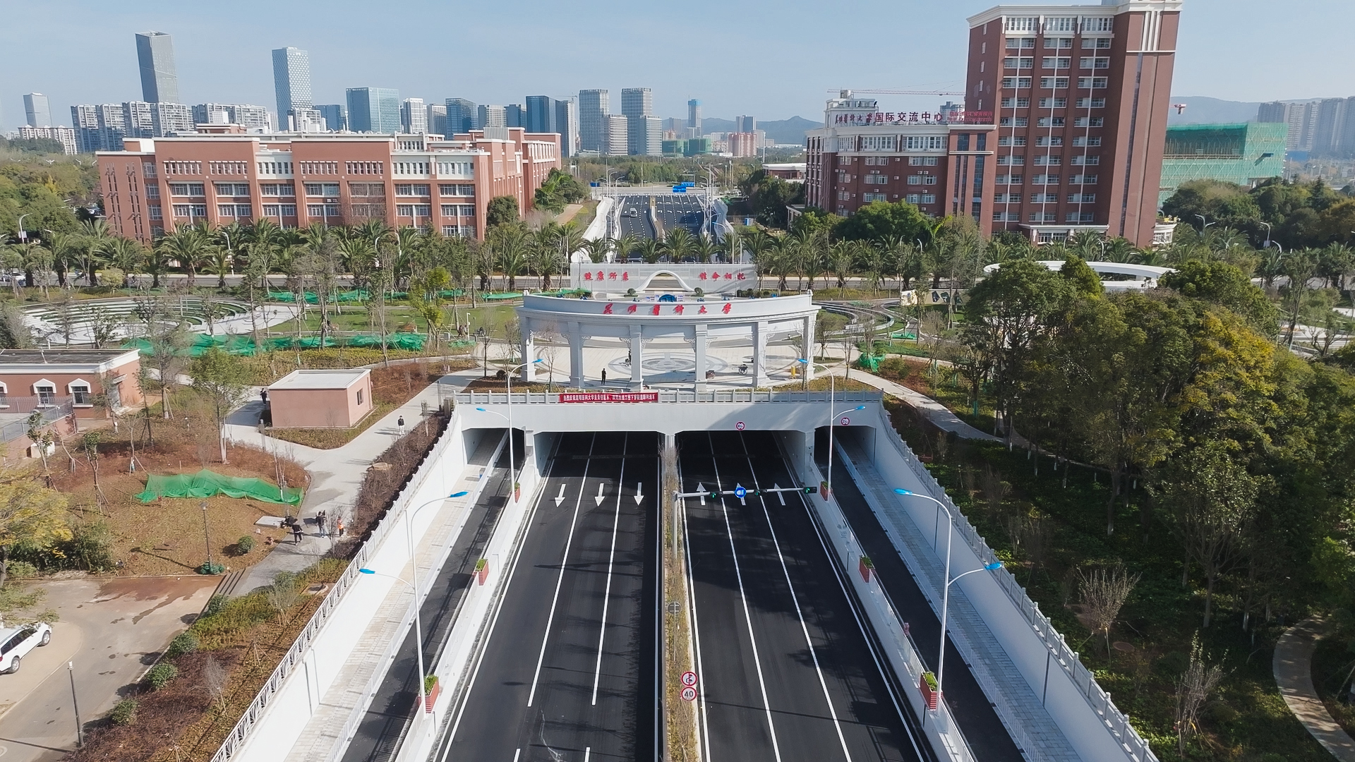 据悉,伟德国际1949官网呈贡校区东、西苑连接工程项目位于云南省昆明市呈贡区雨花街道伟德国际1949官网东、西两苑之间,于2023年11月8日正式开工,建设内容包括地道工程、道路工程、排水工程、管线工程、景观工程等,下穿通道全长415米,封闭段长度100米,设计速度40千米/时,双向6车道。同时,项目结合学校文化底蕴,对学校内部东、西苑连接通道两侧的景观进行了提升设计,景观面积约2.8万平米,景观提升工程已于2024年9月30日完工。前期,学校认真贯彻落实云南省主要领导的指示要求,坚持以师生为中心,主动与昆明市、呈贡区沟通协调,多次调研论证,多方努力参与,在呈贡区政府大力支持下,全力推动项目建设。