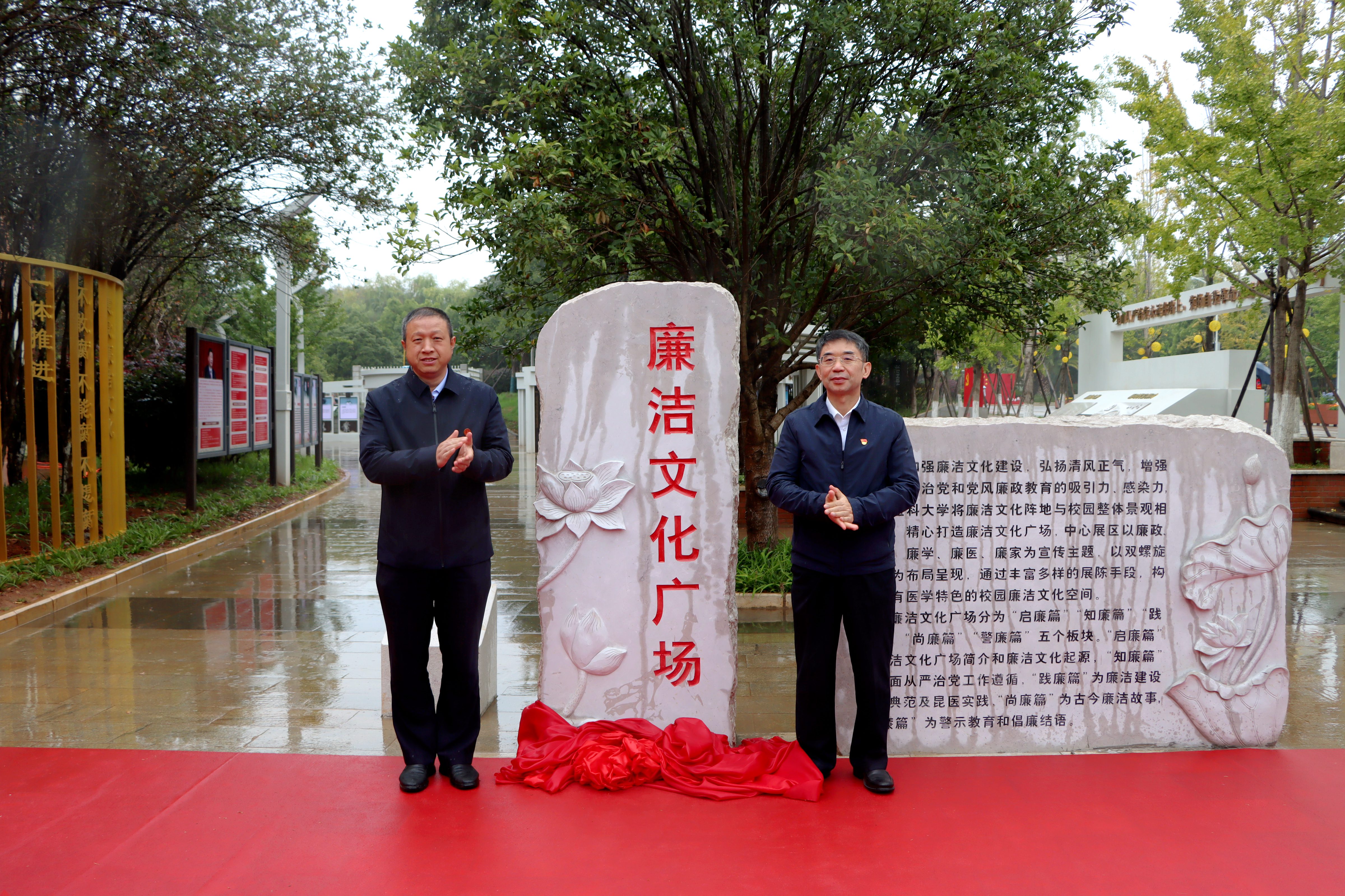 校党委书记尹向阳、校长夏雪山共同为廉洁文化广场揭幕。