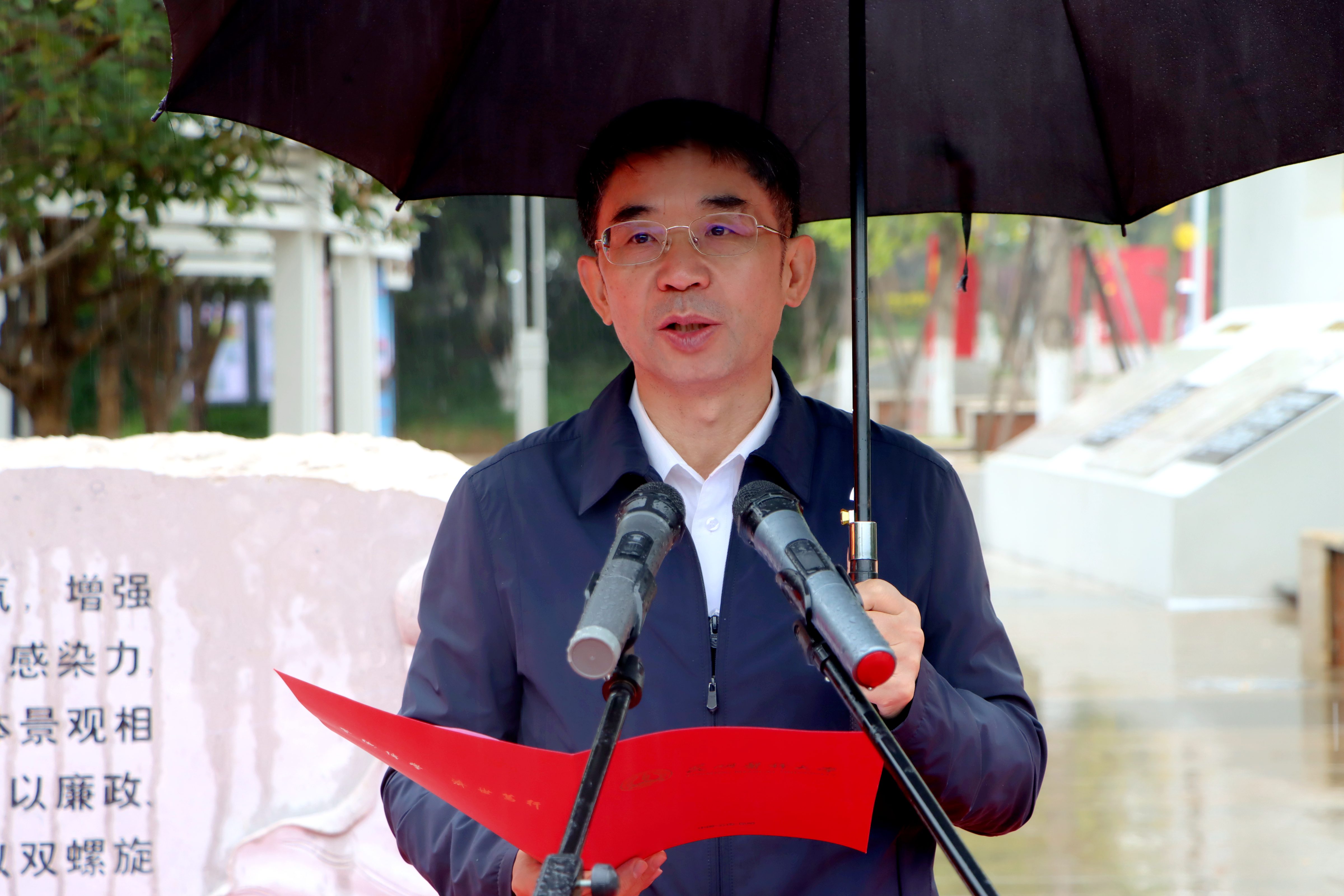 校党委书记尹向阳在揭幕仪式上致辞,向廉洁文化广场建成启用表示祝贺。他指出,学校肩负教育、医疗两大领域职责,必须将廉洁文化建设作为一体推进不敢腐、不能腐、不想腐的基础性工程抓紧抓实抓好,廉洁文化广场正式建成启用为推进“清廉学校”“清廉医院”建设提供了良好的硬件基础和支持,是推动廉洁文化教育由室内向室外拓展、由党员干部向普通师生覆盖的创新之举。各单位、各部门要结合实际开展廉洁文化阵地建设,利用好、整合好各类廉洁文化阵地及教育资源,持续发掘和融合医学文化和廉洁文化元素,构建起广覆盖、多层次、全方位的廉洁文化体系,切实发挥好廉洁教育的基础性作用。希望广大党员干部、教医护职工和学生以此次廉洁文化广场建成启用为契机,以清廉文化启智润心,以高尚道德砥砺品格,着力建设风清气正的校园政治生态,为高水平开放型医科大学建设提供坚强保障。