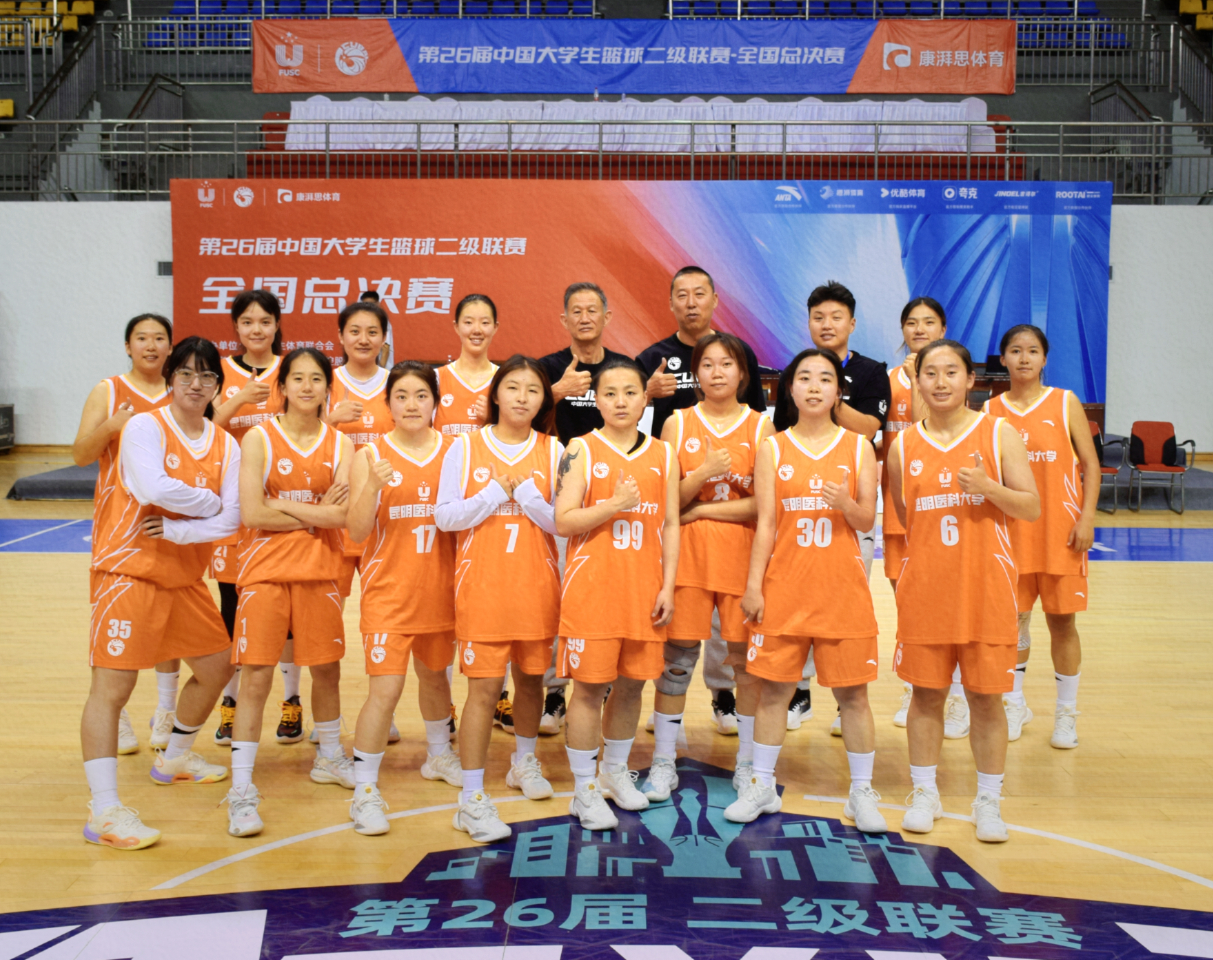 第二十六届中国大学生篮球二级联赛全国总决赛于2024年5月29日5月1日至6月7日在山东青岛举行。在此次比赛中共有30支队伍参加比赛,伟德国际1949官网女子篮球队代表云南省高校参赛。经过三轮比赛,我校战胜青海民族大学,太原师范大学,以小组第一的成绩出线;在今天的十六进八比赛中打败华北电力大学,成功晋级八强。