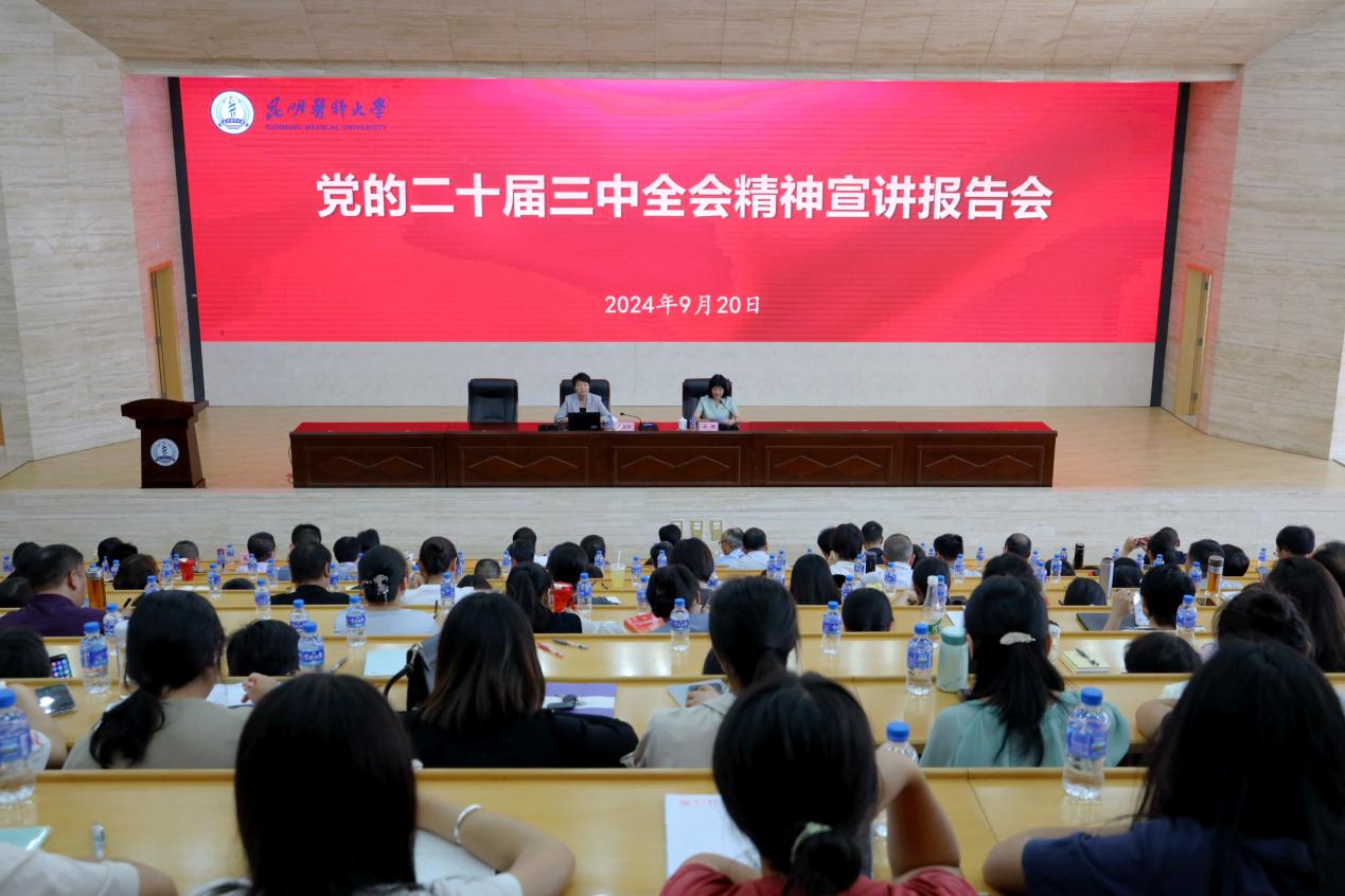 此次报告会是学校学习贯彻党的二十届三中全会精神处级领导干部集中培训、基层党组织书记集中培训的第一讲,同时也是2024年云南省高校百场形势政策报告会第三讲、“云岭大讲堂·文化昆医讲坛”第四讲和“万名党员进党校”第三讲。