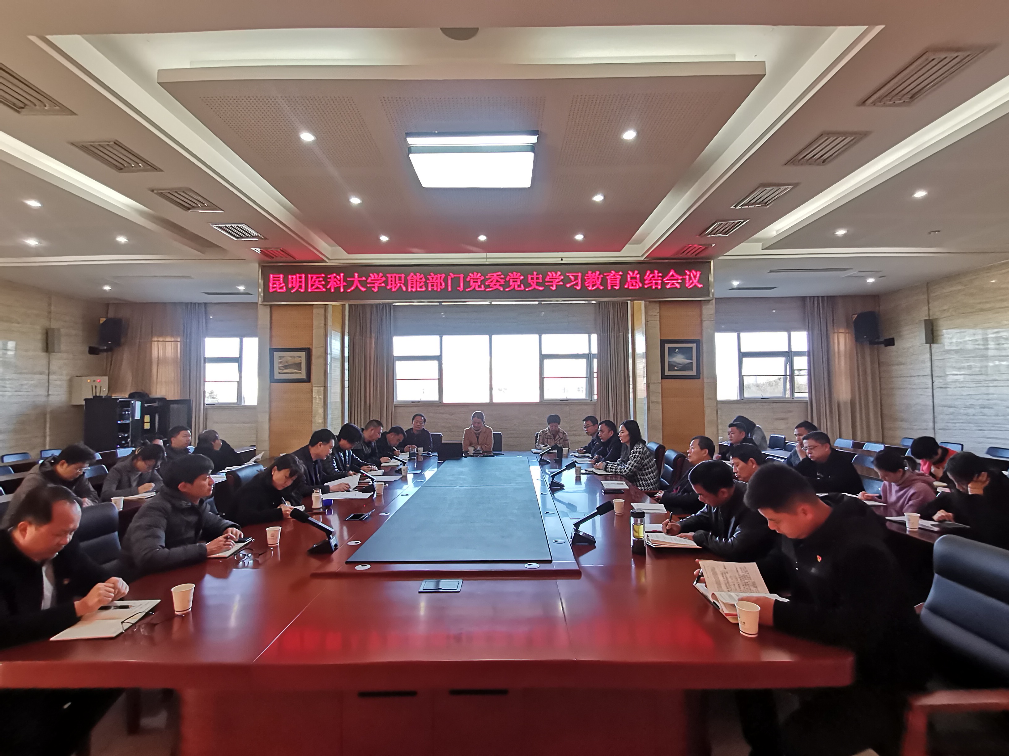 3月3日上午,职能部门党委党史学习教育总结会议在呈贡校区召开。职能部门党委书记鲁彪出席会议并讲话。会议由职能部门党委副书记周铨主持。