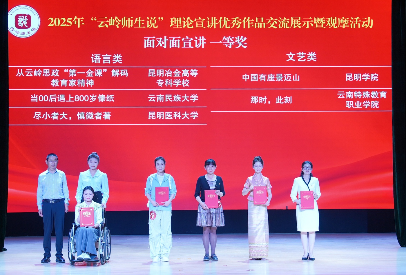 7月9日,2025年“云岭师生说”理论宣讲优秀作品交流展示暨观摩活动在昆明学院举行。学校马克思主义学院教师郑海涛从决赛的30强中脱颖而出,荣获本次大赛语言类一等奖。学校荣获优秀组织奖。