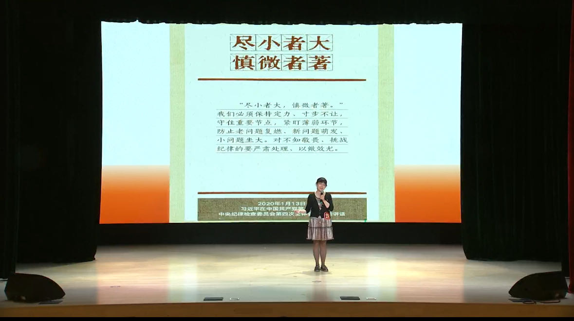 郑海涛以《尽小者大慎微者著》为题,以习近平总书记在十九届中央纪委四次全会上强调的“尽小者大,慎微者著”为切口,结合习近平总书记考察云南重要讲话精神、在全党开展深入贯彻中央八项规定精神学习教育,从“文化传承”“百年作风”“现实伟力”“使命担当”4个层面,深刻揭示了党的作风建设是永葆党的先进性和纯洁性的强大武器,也是实现强国建设、民族复兴伟业的根本保证。