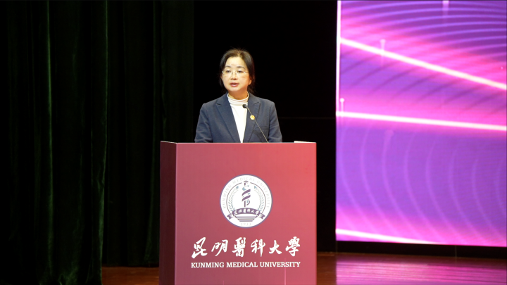 夏雪山在颁奖仪式上讲话。他表示,学校改革建设发展取得的成绩,是全校教医护职工和同学们共同努力的结果。荣誉是肯定,更是鞭策,希望受表彰者戒骄戒躁、再创佳绩;希望全体师生对标先进、争当先锋。夏雪山对同学们提出3点希望:一是希望同学们坚定理想信念,筑牢信仰根基。要胸怀“国之大者”,在实现中国特色社会主义现代化的征程中实现人生价值和追求。二是希望同学们肩负时代重任,勇攀医学高峰。要不断增强本领,在实践中求真知、在攻坚中长才干,刻苦钻研、潜心攻关,努力成为党和人民信赖的生命守护者。三是希望同学们保持朝气和锐气,敢于实干担当。要把精力用在干事创业上敢闯敢试、敢为人先、脚踏实地、精益求精,把心血倾于卓越成效中,在实践中贡献属于昆医人的智慧和力量。