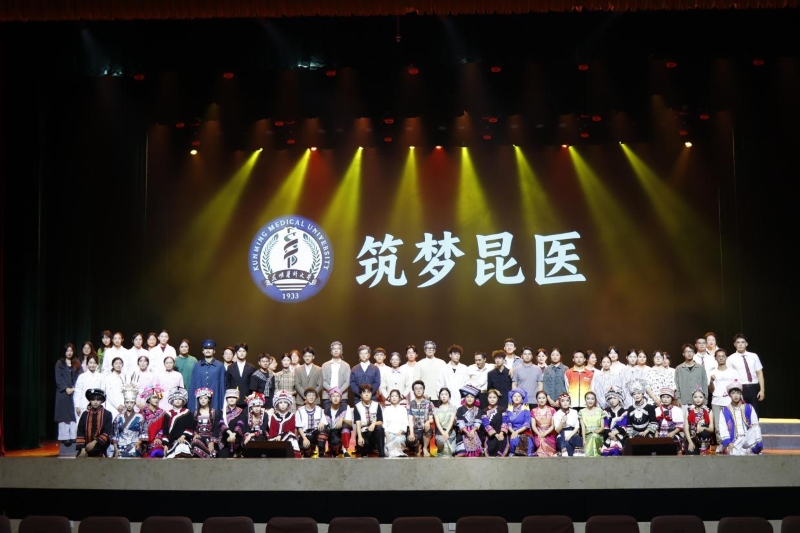 《筑梦昆医》2017年开始策划,于2018年10月在建校85周年系列文化活动中正式上演。剧本经修改和复排后,2023年10月作为建校90周年献礼剧目再次上演。自2024年开始,该剧被列为新生入学教育保留剧目,每年为新生呈现一堂生动的“开学第一课”。