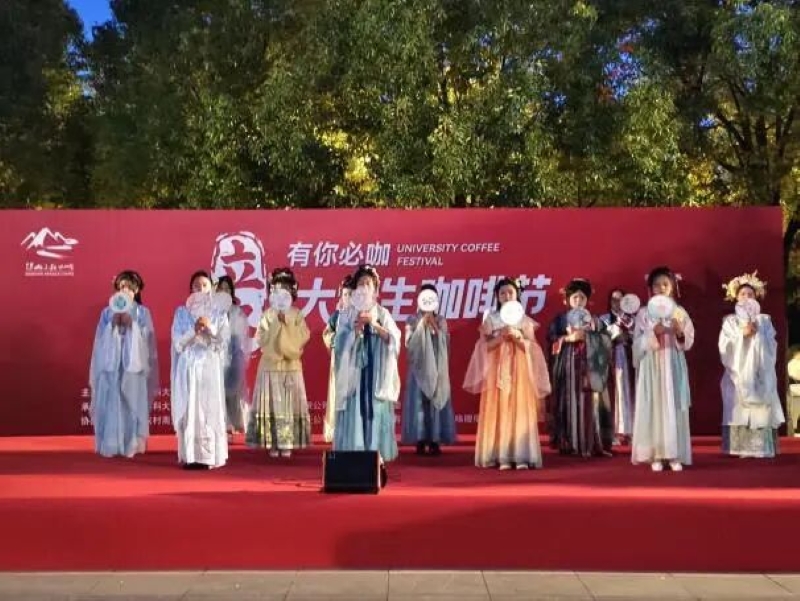 本次活动在学生会堂前广场和西苑二食堂前开启咖啡冲泡体验、咖啡创意集市与咖啡音乐活动。同学们在专业咖啡师的指导下亲手研磨产自高山地区龙陵县的“保山小粒咖啡豆”,学习黄金冲泡配比,品尝不同手法带来的风味层次,沉浸式体验“立冬的第一杯咖啡”所带来的温暖与醇香。创意集市人头攒动,师生们既可选购特色咖啡与农特产品,也可参与“咖啡创意打卡”互动,领取丰厚的咖啡礼品。咖啡音乐活动将活动推向高潮,由学生带来的舞蹈、演唱等节目轮番上演,青春活力与咖啡醇香在夜色中交织共鸣,为整场活动画上热烈而难忘的句点。