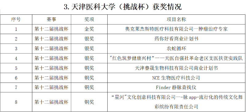 全国部分医科高等院校曾获奖情况汇总