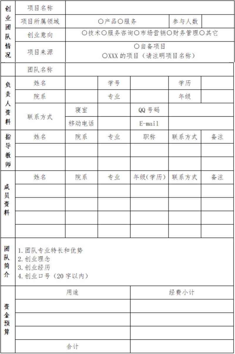 伟德国际1949官网第九届大学生创业计划大赛创业项目报名表