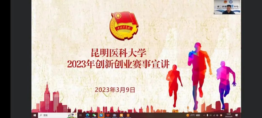 3月11日,学校2023年创新创业竞赛宣讲会采用线上钉钉直播的方式开展,会议由校团委副书记张培楠介绍学校创新创业工作开展情况,校团委成长服务部副部长王芳作赛事培训,第十届云南省“挑战杯”大学生课外学术科技作品竞赛特等奖团队负责人陈鑫月、第十届云南省“挑战杯”大学生创业计划竞赛银奖团队负责人李风和作经验交流分享。