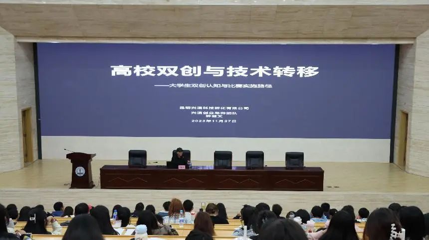 主讲人钟健文为参训人员带来“高校双创与技术转移——大学生双创认知与比赛实施路径”的专题讲座。钟健文评委围绕高校双创、技术转移、科技成果转化、双创认知与比赛实施路径四个方面展开培训,从高校双创的发展背景、历届“互联网+”赛事的回顾与展望等方面来论述双创工作的意义、目的和比赛实践。整个讲座既结合了国家的相关的政策方针、当前创新创业赛事的重点、规则和内容,又结合了学校双创工作的实际情况,为参训学员们参赛项目选择、参赛准备等提供指导。