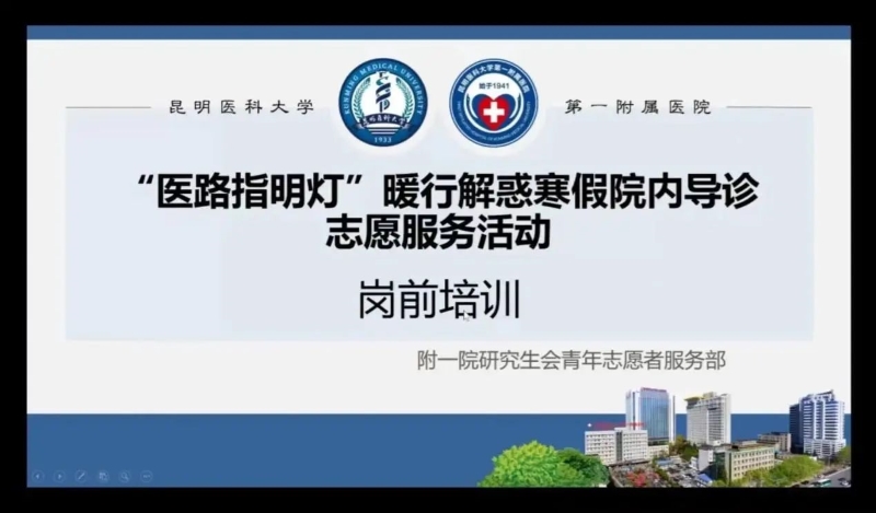 寒暑假就诊患者增多,尤其一老一小、州市患者对医院布局、就诊流程较为陌生,为了带领青年大学生以生动社会实践提升大局贡献度,以实际行动落实《伟德国际1949官网第一附属医院改善就医感受提升患者体验主题活动实施方案(2023-2025年)》,增进民生福祉,提高人民生活品质,继2023年医院“医路指明灯”暖行解惑院内导诊常态化志愿服务活动和暑期“一老一小 宝贝计划”昆明首届公益陪诊志愿服务活动,2024年1月5日,伟德国际1949官网第一附属医院寒假院内导诊陪诊社会实践及志愿服务活动正式启动。于1月6日至11日期间,院团委在两院区分批次围绕志愿服务内容、就诊流程、服务礼仪、沟通技巧、医院各栋楼地理位置、科室楼层分布、就诊服务号和自助挂号机的使用等对志愿者开展了两次线上培训与四次线下培训。