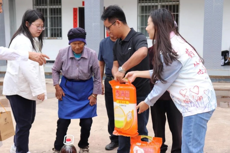 最后,带队教师张冰、王琳、计丕涛代表志愿服务队给村民送上慰问品,村民们脸上都露出了深深的感动与喜悦。这不仅代表了团队的关心与慰问,更蕴含了深深祝福,祝愿他们身体健康,幸福如意。