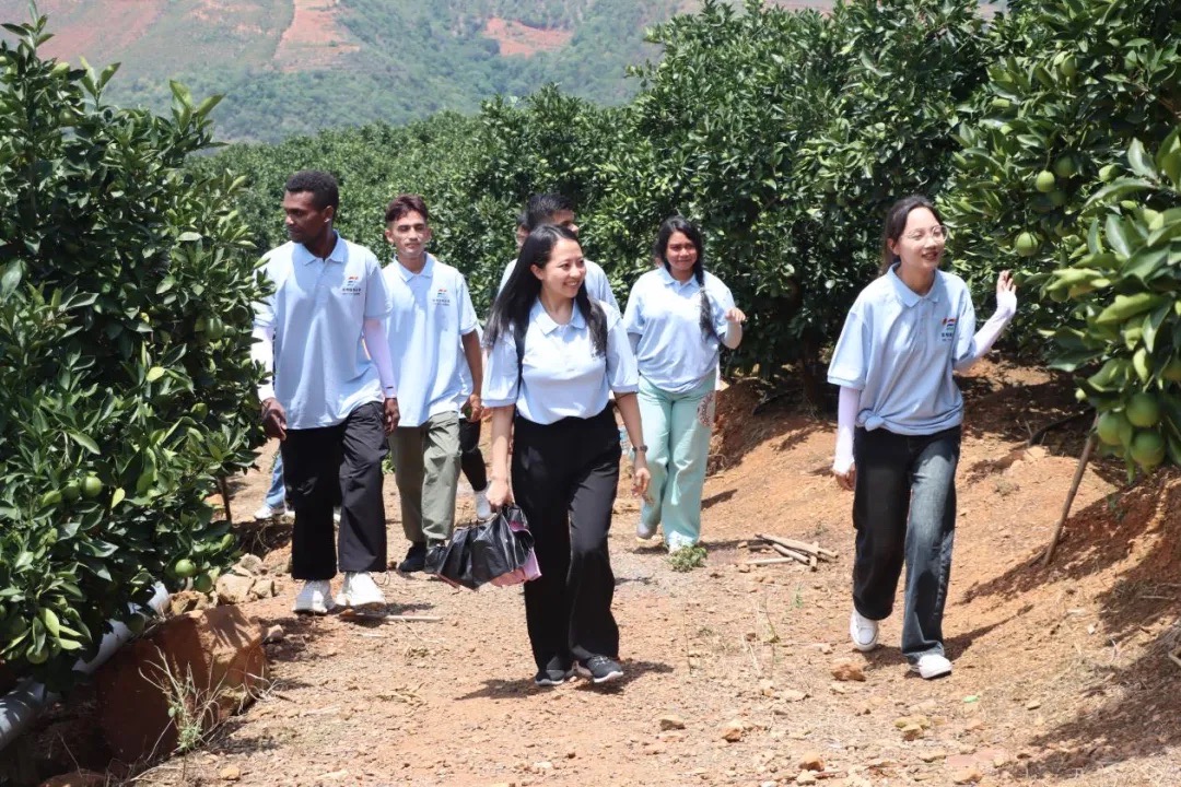 队员们在漫山遍野的冰糖橙树林中,感悟“橙王”褚时健先生不屈不挠,艰苦奋斗的精神,感受这片土地上的勃勃生机。