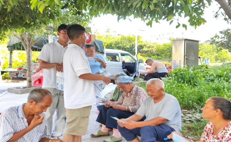 8月3日,实践队前往绥江县新滩镇石龙开展宣传守好百姓“养老钱”让养老诈骗防护网“老”不可破预防诈骗宣传活动、“一盔一带,安全出行”志愿服务活动、“关爱青少年,防溺不可少”青少年防溺水“六不要”宣传活动。实践队在九龙社区和天宝社区向老人讲解目前最新的诈骗手段,并给使用智能手机的老人安装了国家反诈中心APP;在路口等地给骑车未佩戴头盔的居民进行安全宣传,并分发宣传手册;随机抽小朋友回答青少年防溺水“六不要”中的“六不要”是指什么,让小朋友牢记安全知识。
