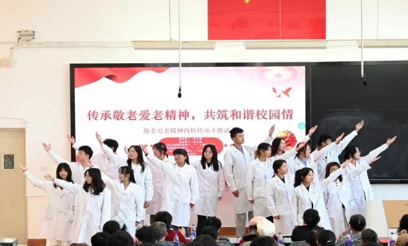 基础医学院各学生团支部、巾帼志愿队及退休党支部共同组织举办了“敬老情·青春梦”文艺汇演。节目内容丰富多样,既有临退休党员教师带来的经典老歌,也有各班级团支部联合带来的爱国歌曲合唱;既有学生自创自演的小品,也有教师团队带来的深情朗诵。整场演出高潮迭起,掌声不断,不仅展现了学院师生的多才多艺,更传递了对老年人的深情厚谊。