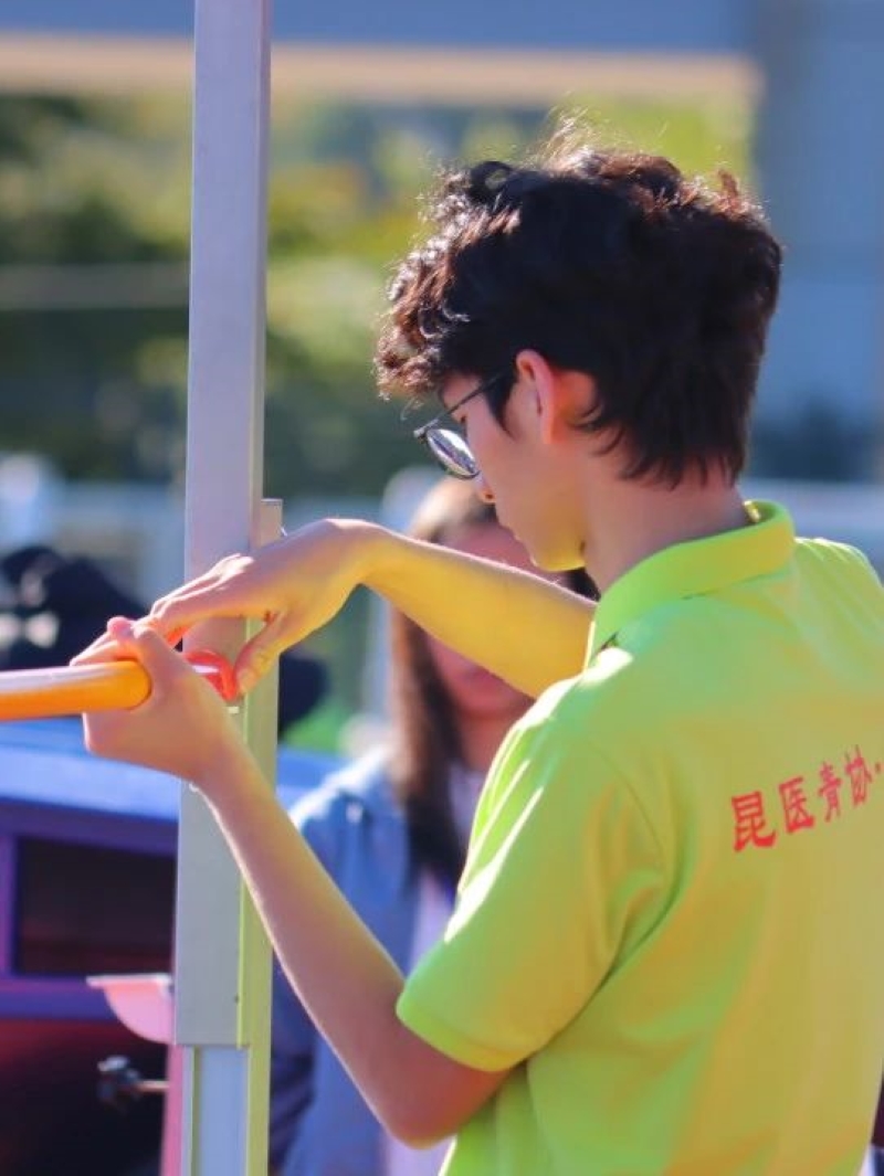 跳高部的志愿者们在微笑中精心调试比赛器材,准备移位的垫子,他们积极配合裁判员,提醒运动员就位并记录比赛成绩确保比赛顺利进行,他们是冬日里的一旭阳光,将热情和温暖传递。