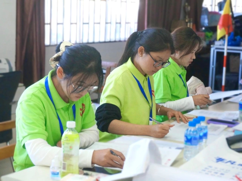 检录组的志愿者们早在清晨万物苏醒,初晓红霞云彩之时便奋战在比赛第一线,他们手中不断传递的号码布,坚定不移将运动员们领向比赛场地的步伐,确切下达的比赛信息都是让运动员消除顾虑,专心比赛的良方。