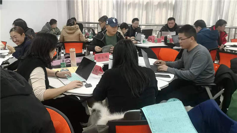 在实践操作环节,张智强教授组织教师进行了“课程思政”教学设计演练和讨论,进一步挖掘所授课程中的思政元素并融入课程教学中,参加培训教师根据自己承担课程分小组进行教学设计,张智强与教师亲切交流,答疑释惑,启发指导,现场气氛热烈。