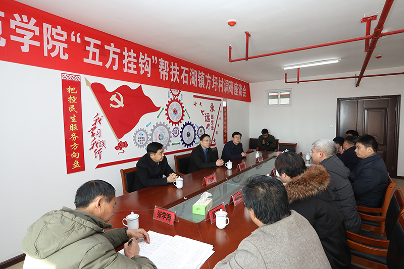 淮师与对方单位在方圩村部开展座谈。座谈会上,储春祥介绍了省委驻涟帮扶工作队进驻涟水县以来的主要工作情况,高度肯定了淮师多年来助力脱贫攻坚取得的成效,表示将进一步加强沟通,更加高效地促进帮扶措施落地生根。涟水县石湖镇党委书记吴正超介绍了石湖镇的基本情况和近年来的发展状况。淮师驻涟帮扶工作队队员朱士龙汇报了驻涟以来的工作进展及成果。