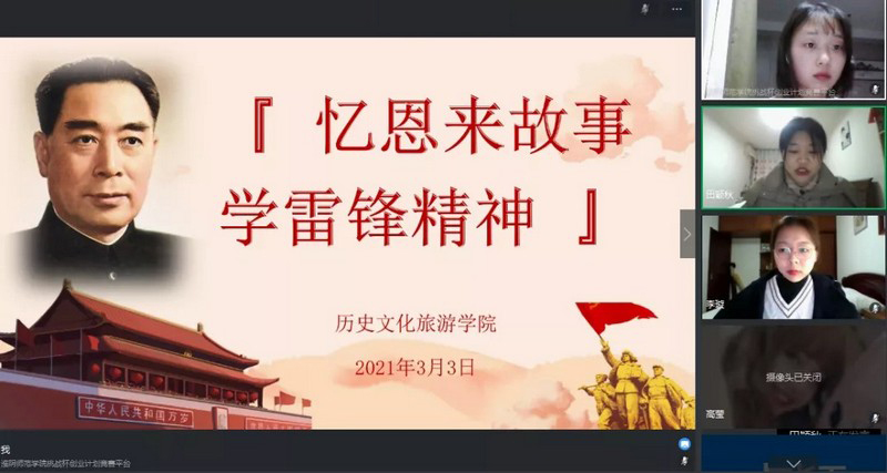 新时代绘就新蓝图,新思想引领新青年。马院蜜蜂微讲团线上开展了“讲好人故事,扬雷锋精神”系列“云宣讲”活动,通过选树在疫情防控工作中涌现出的先进事迹,传承雷锋精神,传递榜样力量。计科学院开展了“向雷锋同志学习,做新时代好青年”线上读书会活动,通过读书会来帮助同学们了解雷锋日的由来、雷锋的生平事迹,深刻理解雷锋精神新时代内涵;教科院充分运用新媒体平台,以“学雷锋榜样,扬恩来精神”为主题举办主题团日活动,线上线下双联动,有声有色学雷锋;历史学院通过举办线上微团课从周恩来对雷锋精神的概括谈起,将周恩来精神与雷锋精神相结合,重温雷锋故事,感受时代精神,传承红色基因;物电学院举办线上观影交流活动,通过观看影片《雷锋在1959》回顾雷锋青春岁月的感人事迹,以小组讨论的形式分享学习感悟,体会雷锋精神的内涵和现实意义。