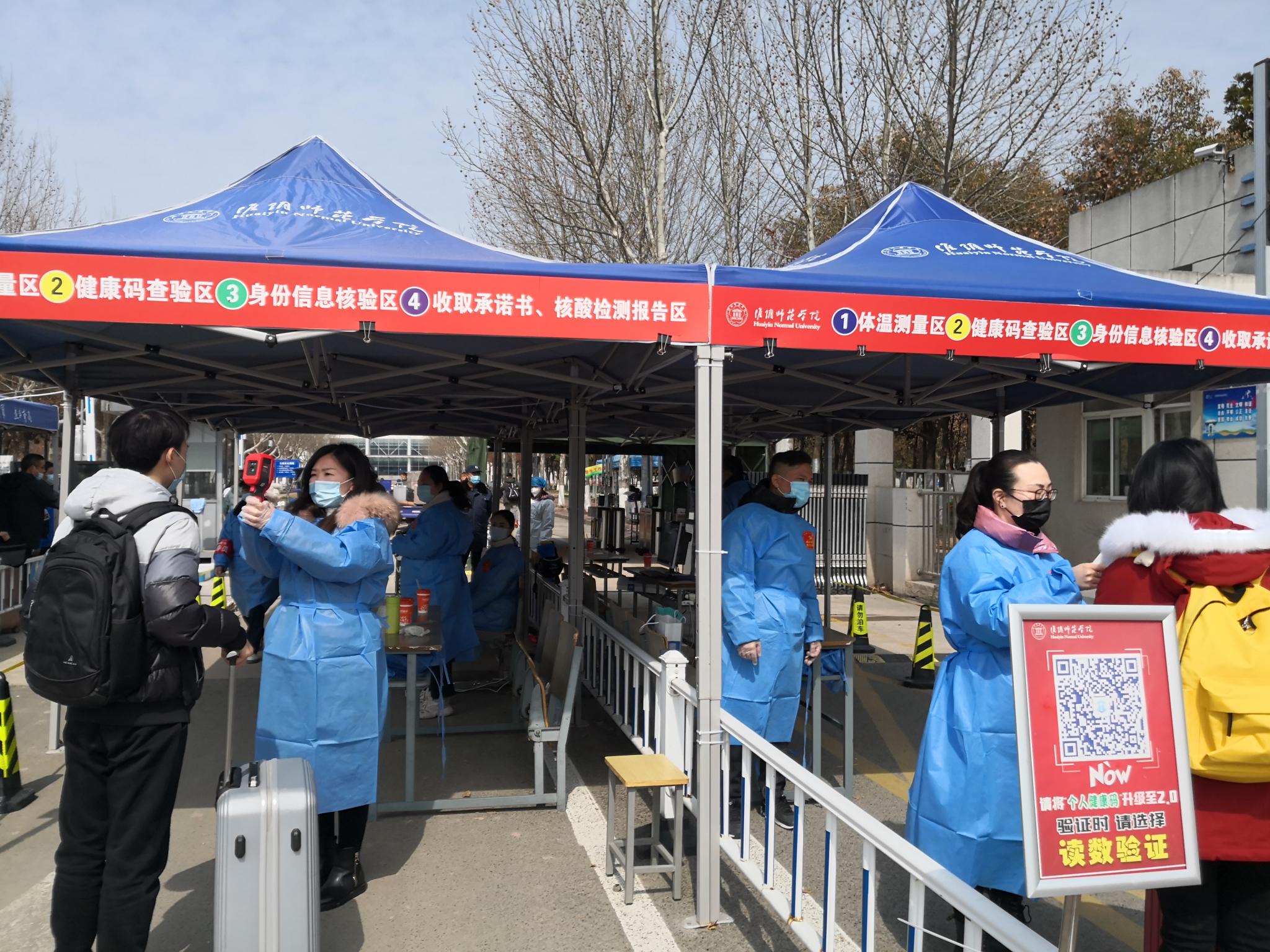 为认真落实学校疫情防控要求,全力确保学生报到工作安全、平稳、有序进行,做好疫情防控,保障校园安全,机关党员志愿者坚守长江路南门、淮河路南门、淮河路北门、交通路南门等疫情防控第一线,发扬不畏艰险、冲锋在前的精神,亮明党员身份,争当防疫先锋,在凛冽的寒风中尽心尽责,无私奉献。在服务现场,志愿者们勇挑重担、不怕苦不怕累、全面细致、热情周到,认真做好家长引导、测量体温、查验健康码、核对身份等工作,主动帮助学生搬运行李。机关多个部门负责人、支部书记带头参与、以身作则,带领党员志愿者筑牢守护之墙,以责任担当铸就最牢防线。