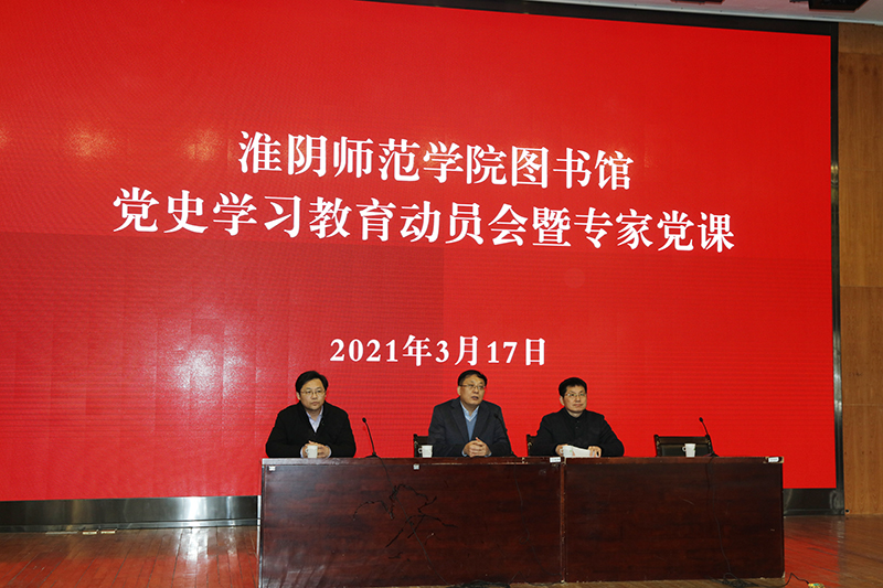 淮师新闻网3月18日电(记者 吴凡)3月17日下午,图书馆在多功能厅举行党史学习教育动员大会暨专家党课,邀请淮安市专业理论宣讲团成员、校工会主席金钊作专题党课。图书馆全体职工参加了此次会议,会议由图书馆馆长李巨澜主持。