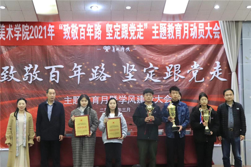 侯美玲作主题教育月动员讲话。她表示,主题教育月将从如何向党的百年历史致敬、如何引导广大学生“坚定跟党走”、围绕“学、传、诵、做”多维度进行活动设计。即积极贯彻习近平总书记重要讲话精神,以习近平新时代中国特色社会主义思想精神为引领,组织全院学生阅读书籍,观看爱国主义影片,通过画笔体现建党一百周年回顾光辉历程。
