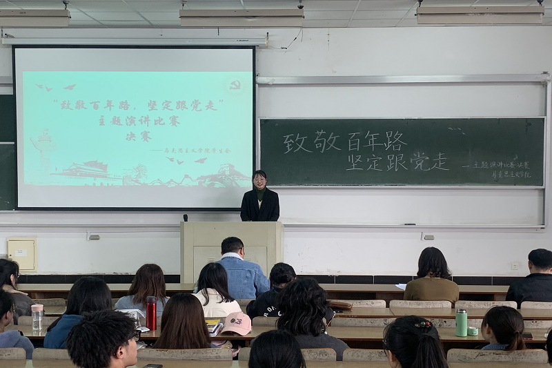 淮师新闻网4月12日电(记者 王瑶)4月9日,马克思主义学院于交通路校区综阶501教室举办“致敬百年路,坚定跟党走”主题演讲比赛。马克思主义党委副书记、副院长陈树湘,副院长姜强强,辅导员程元鹏担任此次比赛评委。
